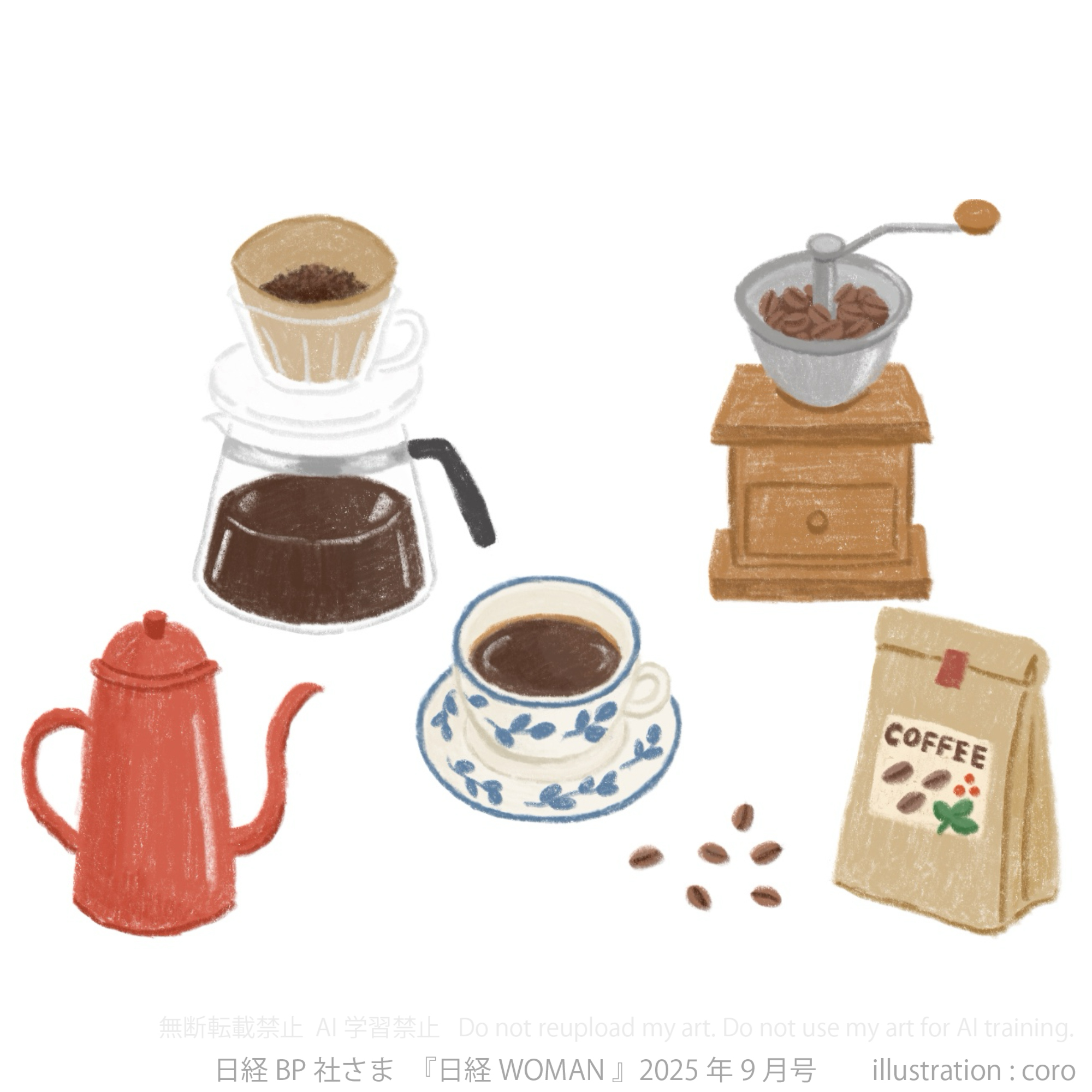 日経BP社さま 『日経WOMAN』2025年9月号 扉絵とカットイラスト9点を担当