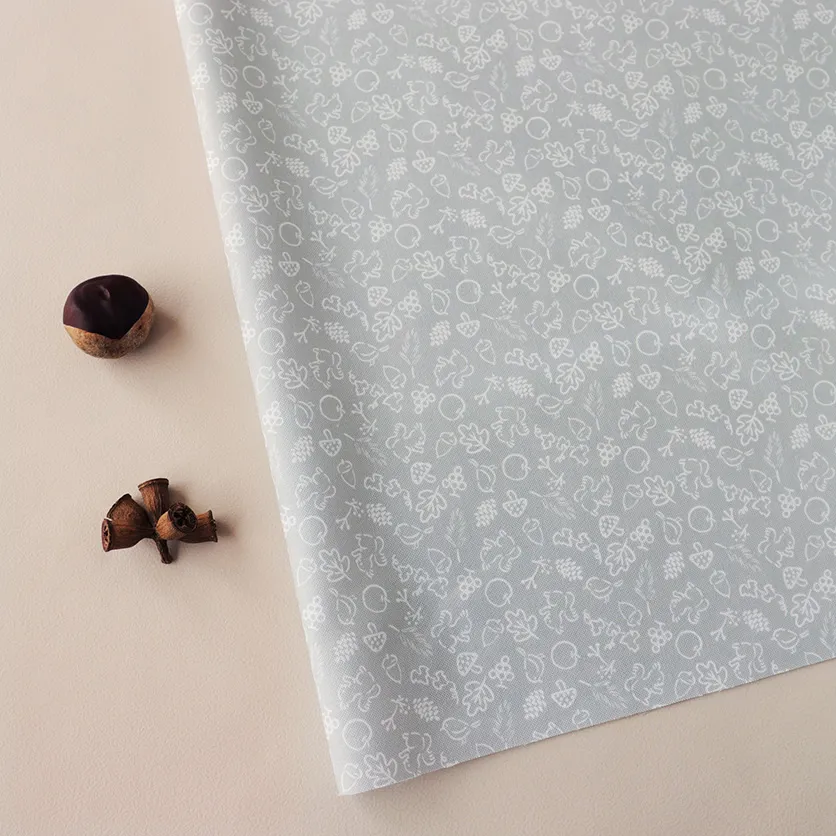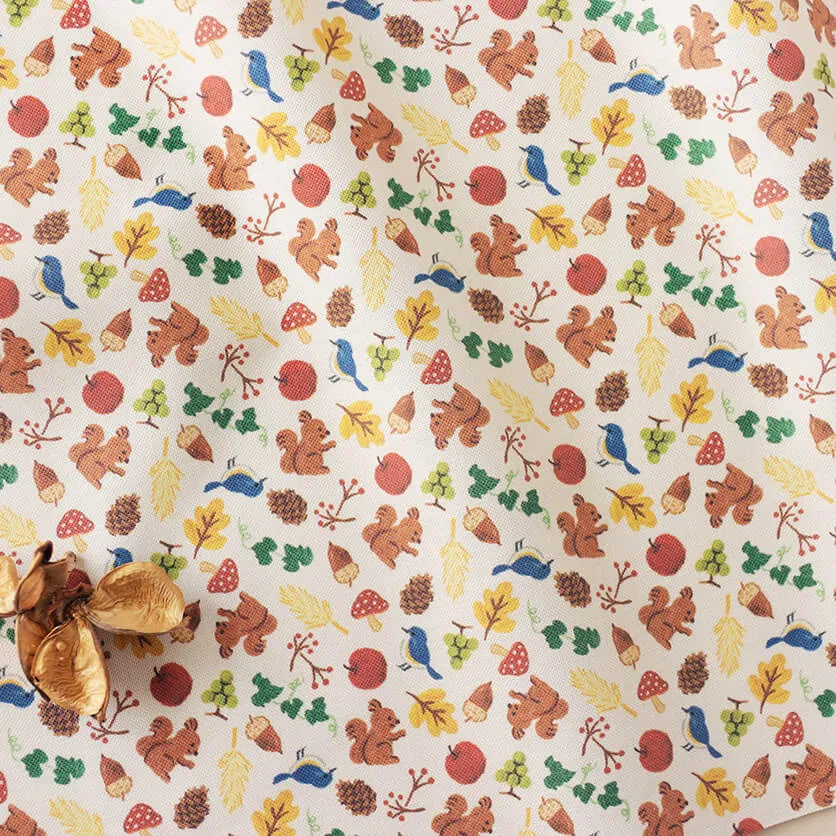 モチーフひとつひとつが小さめなので、お気に入りをしまうポーチや巾着、ブックカバーなどの小物作りにぴったり。 もちろん、お子様のスモックや、お部屋を彩るカフェカーテンにもおすすめです。 手にするたびに心がほっこりと温まる、そんな優しい物語をあなたの日常に紡ぎます。